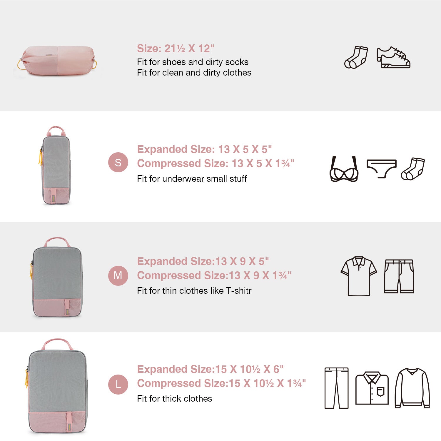 - 2 SET COMPRESSION PACKING CUBES: There are additional transparent small pockets on the outside of the organizers, perfect for clothing labels or specific indicators.