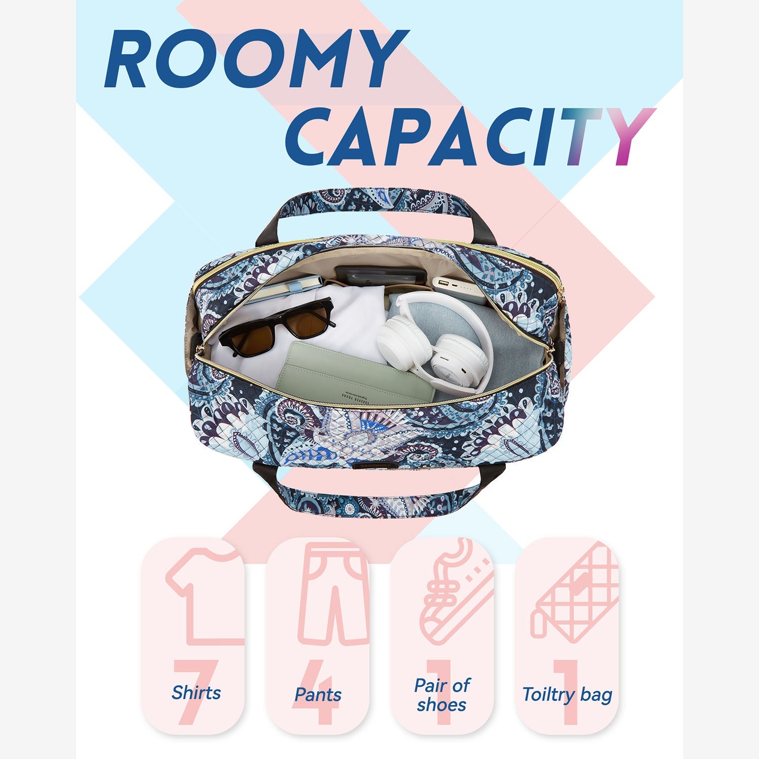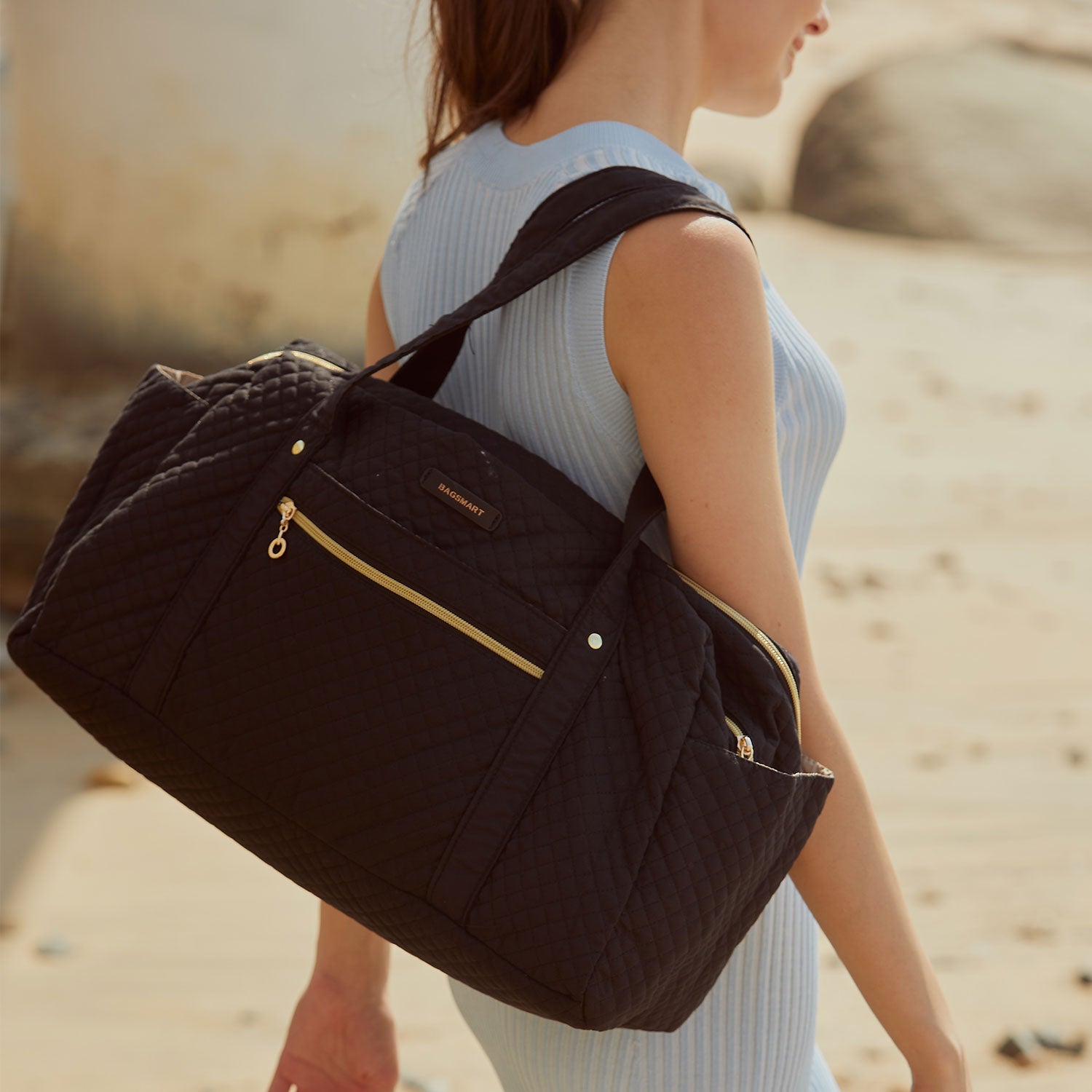 Prepare for an overnight stay with our spacious duffle bag, offering room for 3-5 days' worth of essentials. Easily pack clothing, toiletries, shoes, laptops, chargers, and any other necessities. Designed for on-the-go convenience, it's ideal for hotel stays, road trips, or business travel, ensuring you're always ready for a night away. Thoughtful features include a dedicated laptop compartment, versatile detachable shoulder strap, waterproof pockets, and a luggage handle strap for seamless transportation. Travel effortlessly with all your essentials, wherever your journey takes you.